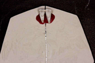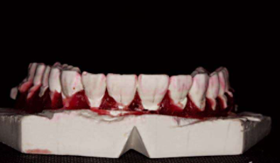 1、修整每个牙齿,使牙根部减小到4~5mm,并调整成锥形。