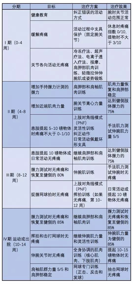 主要通过关节主动活动、牵伸放松和肌肉力量训练,保持关节活动度、增加组织柔韧性、缓解肌肉紧张、减轻疼痛、加强关节的动态稳定性。最终增强腕伸肌抵抗过劳损伤的能力,防止复发。