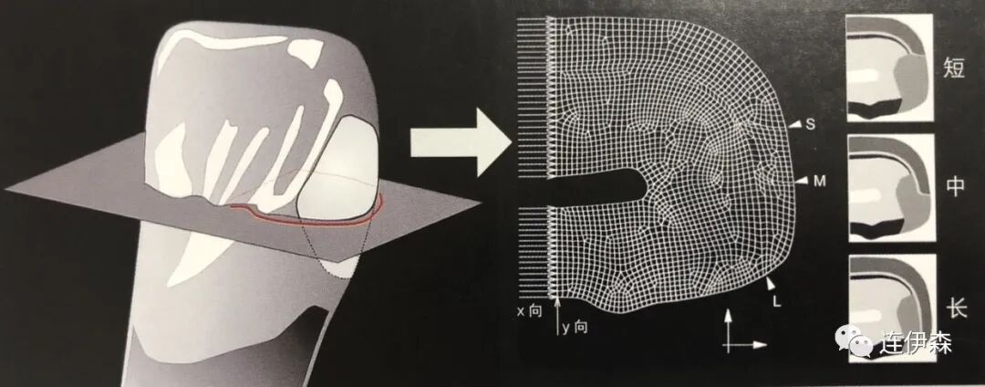 提取牙冠中部的横截面建立数字模型,由于左右对称,只分析近中部分。