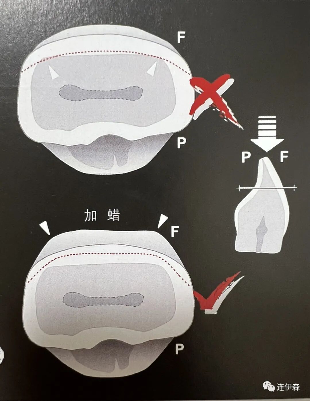微创原则:必须用蜡型恢复牙冠最终修复的形态后再进行定深预备;