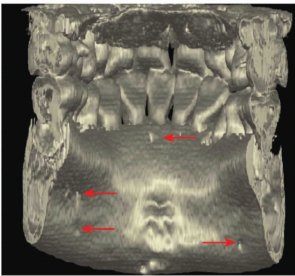 颌骨舌侧见多个开口