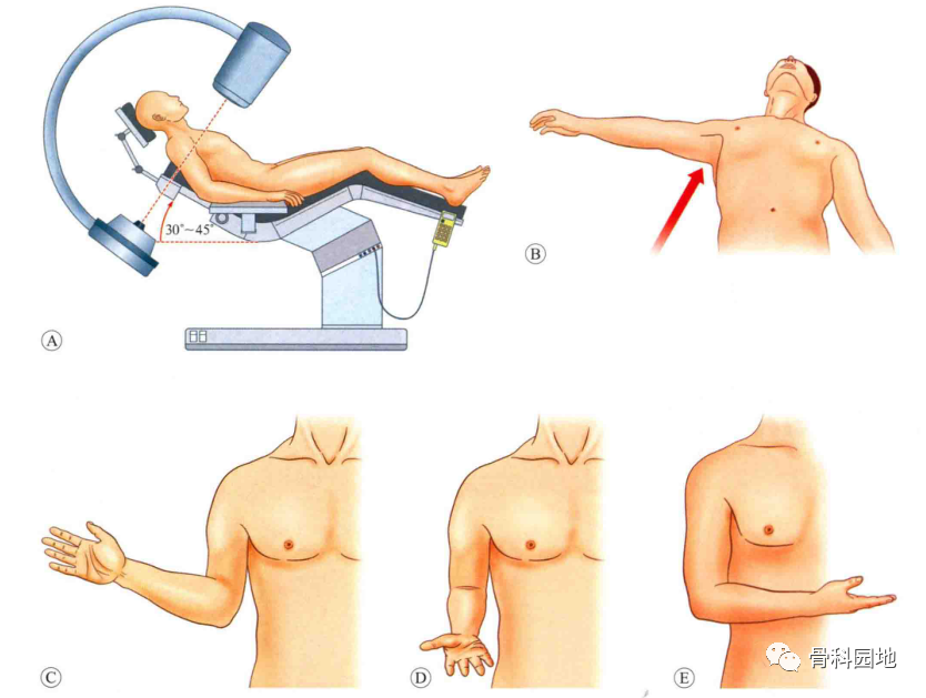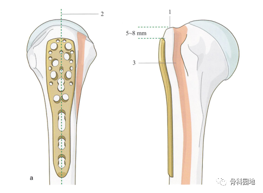 肱骨近端骨折钢板固定时首先要考虑的是软组织环境。大结节以及冈上肌和冈下肌腱的止点限制钢板位置的近端范围。但可以在肱骨近端外侧、三角肌止点近端放置钢板,而不会发生软组织撞击或过度软组织剥离。