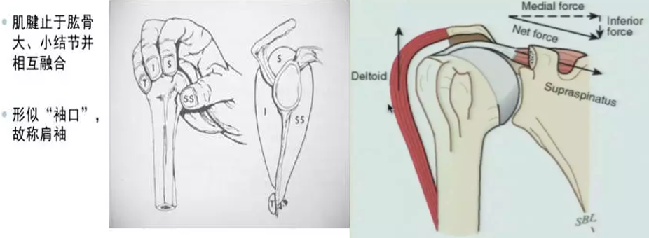 肩袖是覆盖于肩关节前、上、后方之肩胛下肌、冈上肌、冈下肌、小圆肌等肌腱组织的总称。位于肩峰和三角肌下方,与关节囊紧密相连。