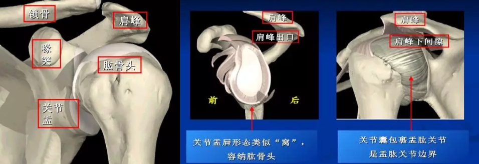 肩关节由肱骨头与肩胛骨的关节盂构成,是典型的球窝关节。关节盂小而浅,边缘附有盂唇。