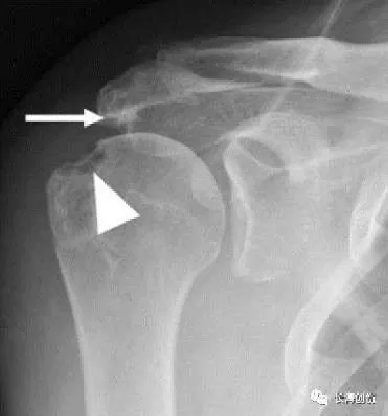 X线检查:一般无阳性改变,存在肩袖损伤的间接征象:可表现为肱骨大结节囊性变、肩峰下前1/3骨质硬化、肩锁关节退行性变和肱骨头上移。