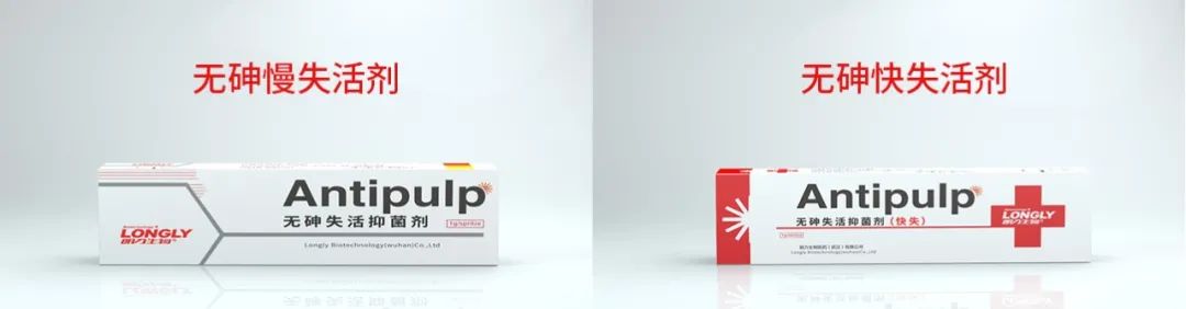 无砷失活剂(快失和慢失)成分中不含砷剂,具有自限性,并且采用了脂溶性赋形剂,失活剂放入髓腔后,将会与牙髓组织融合,随时间推移,后期失活作用随之减弱。