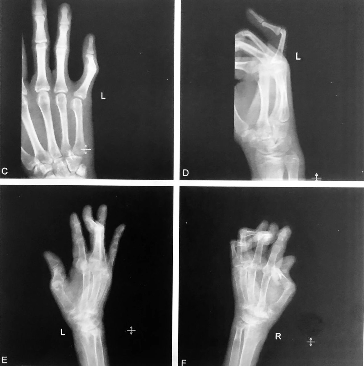 分别为干眼症患者,外伤患者,类风湿性关节炎患者的鹅颈畸形