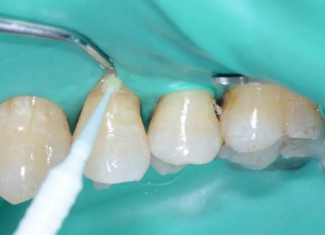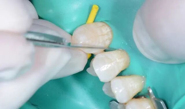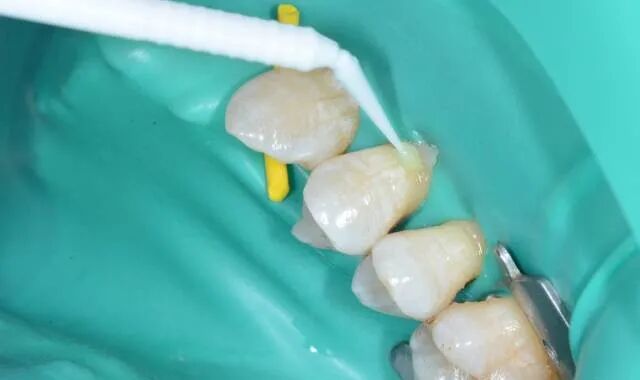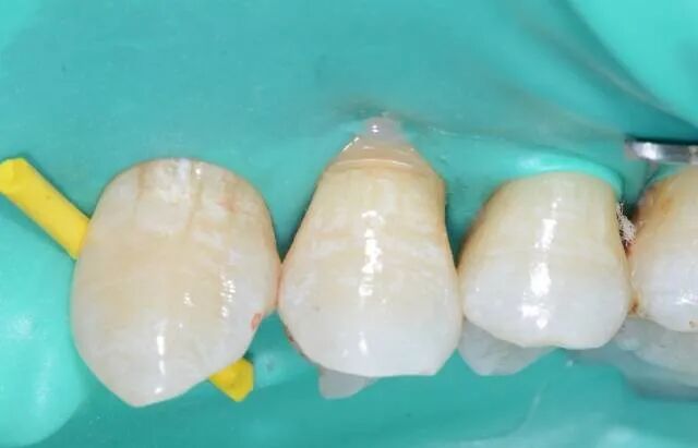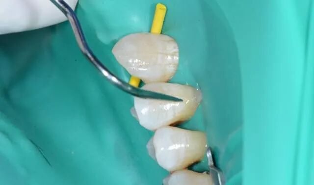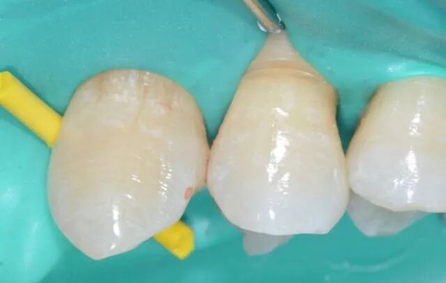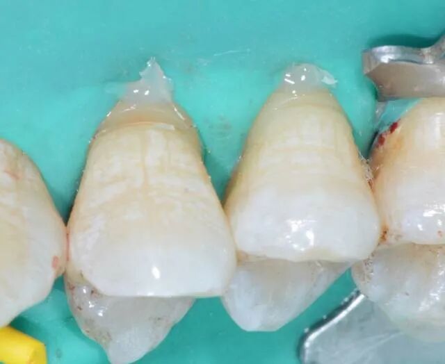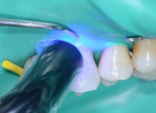 对于楔状缺损的治疗一般采用充填的方法,由于缺损的位置比较特殊,隔湿比较困难,充填体脱落时有发生,我们可以采用橡皮障下,用树脂突的方式进行隔湿,效果还是非常不错的。