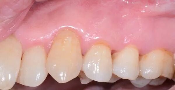 用小挖匙压牙龈向龈方 可以看到缺损全部暴露