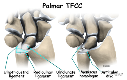 尺骨远端稳定结构,被称为TFCC Triangular Fibrocartilage Complex Tear (TFCC)