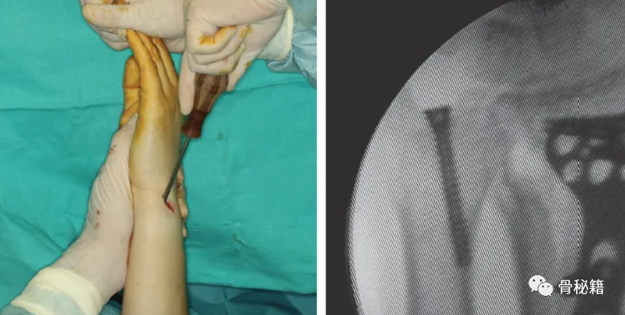 采用茎突入路进行手术复位与固定,拧入空心螺钉