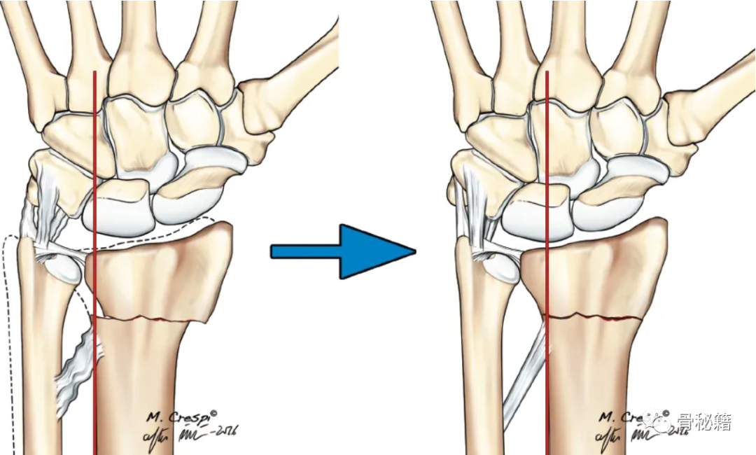需要注意的要点:如果桡骨复位不佳,可能导致下尺桡关节匹配问题及相关韧带松弛最终带来相关症状,注意看桡骨尺侧轴线的位置