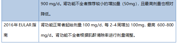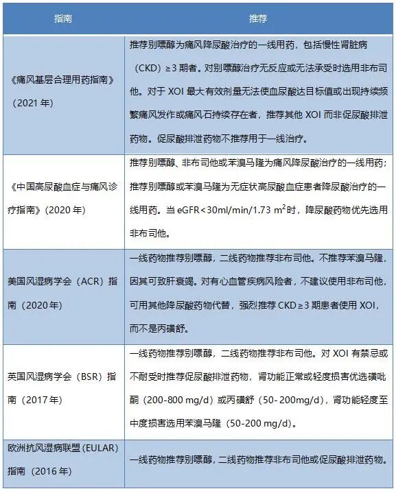 表1 不同指南推荐的高尿酸血症和痛风治疗药物