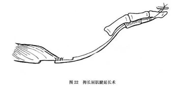 也可把远侧屈肌腱横片一分为二,把近侧腱头夹在其中作褥式缝合;或把指深屈肌腱抵止处的指骨凿一条缝,掀起骨片,把腱头埋入骨缝,再对肌腱进行缝合。