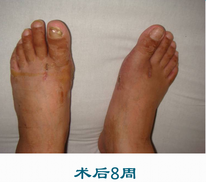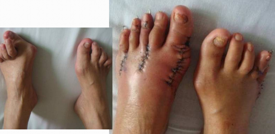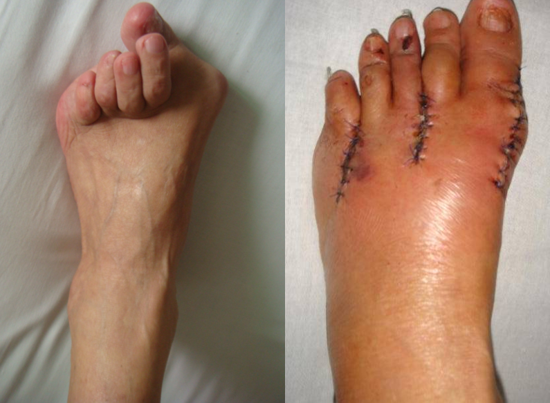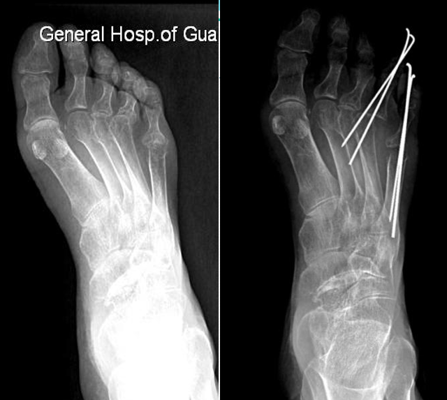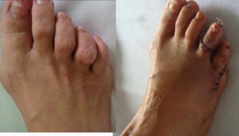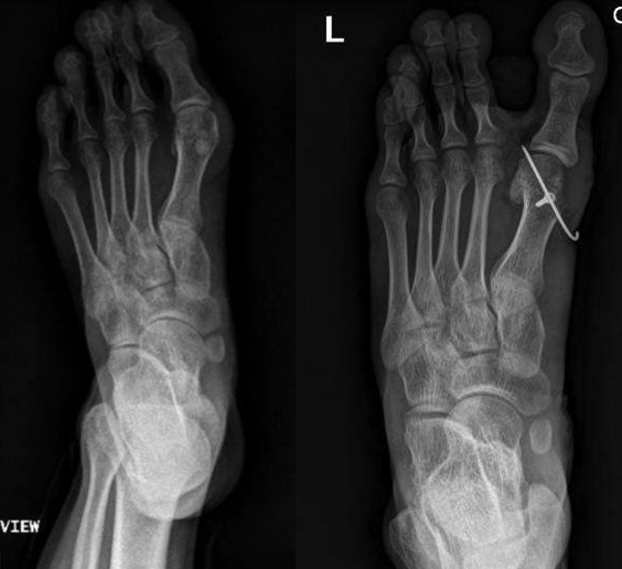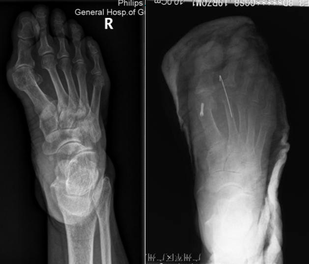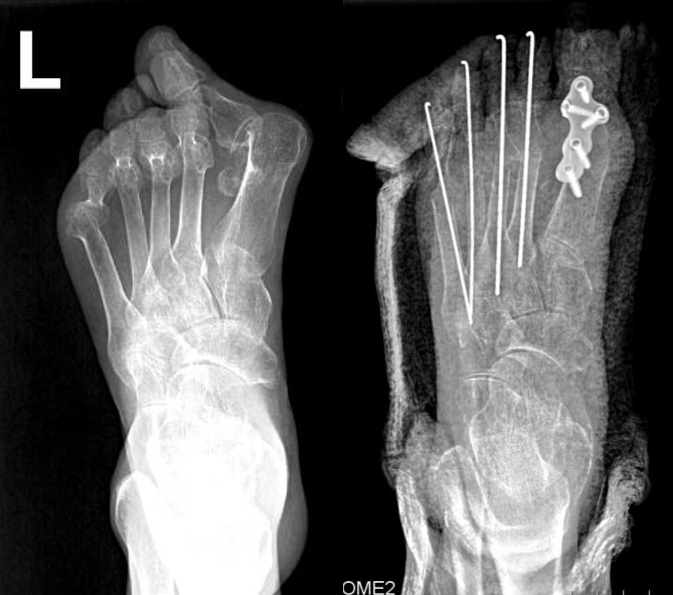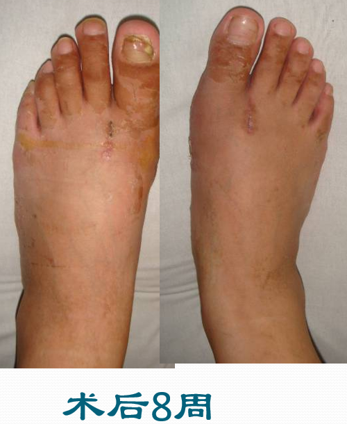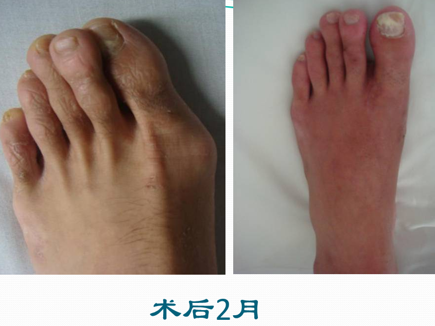 术式:左足:第1跖趾关节融合+第2-5跖趾关节成形术;右足:第4趾间关节融合+第5跖趾关节成形术