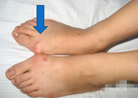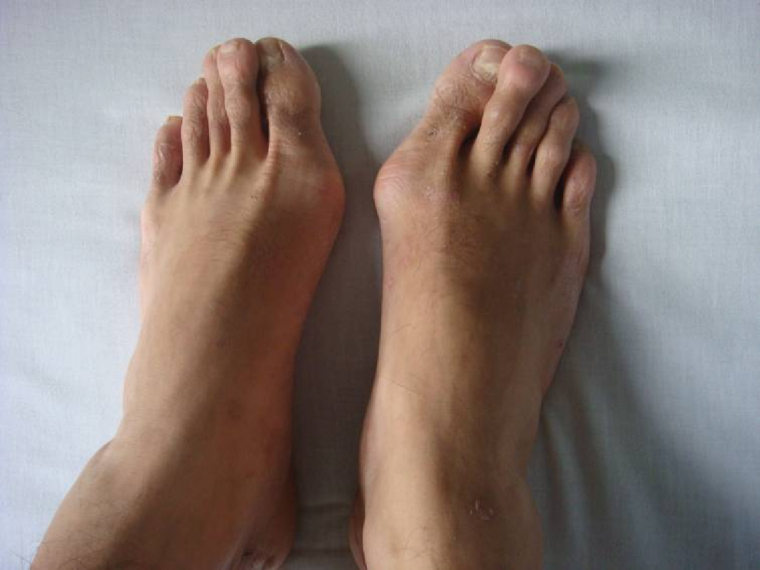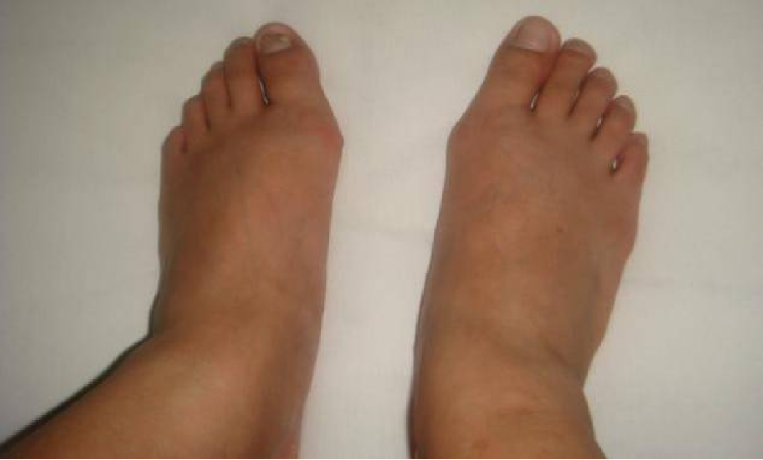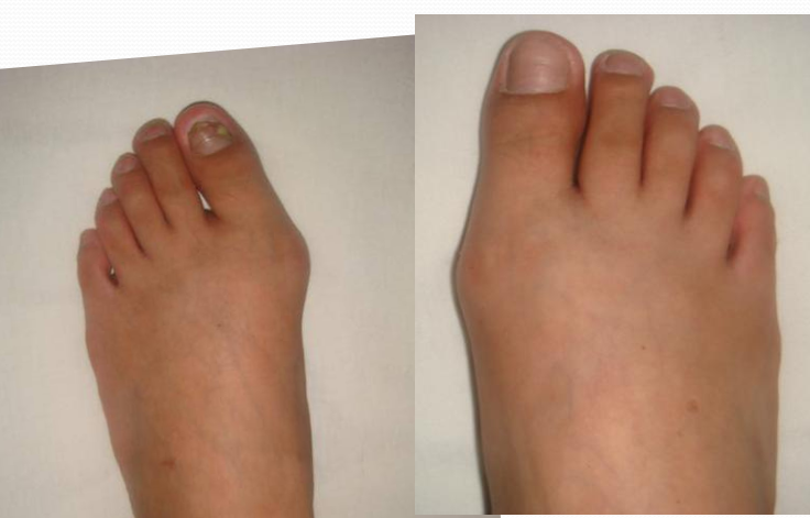 - 第1跖趾关节内侧或背内侧肿物突出,表面皮肤可有胼胝
