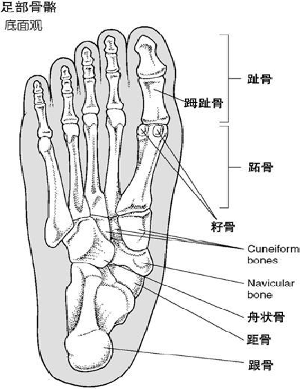 拇趾籽骨是组成第1跖趾关节的重要结构,起着保护屈拇长肌腱和跖骨头的作用,同时类似一个滑车增加了屈拇长、短肌腱的力量。