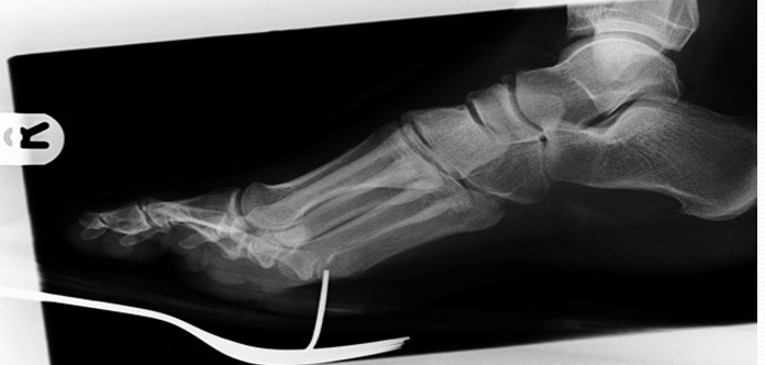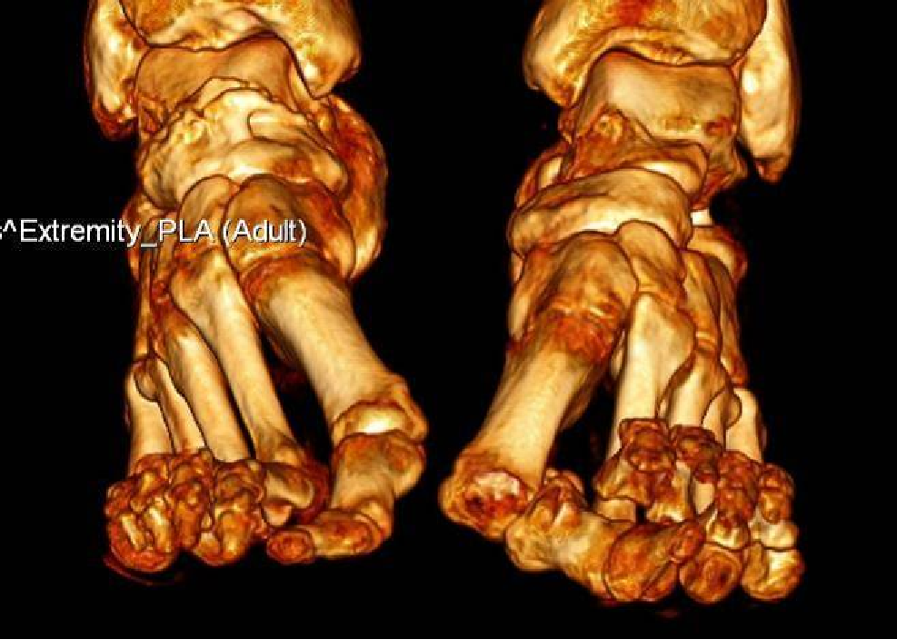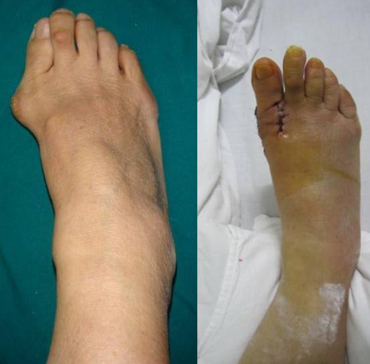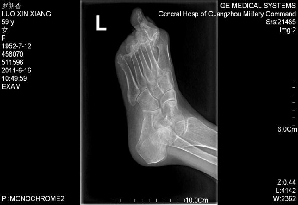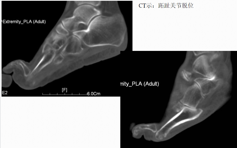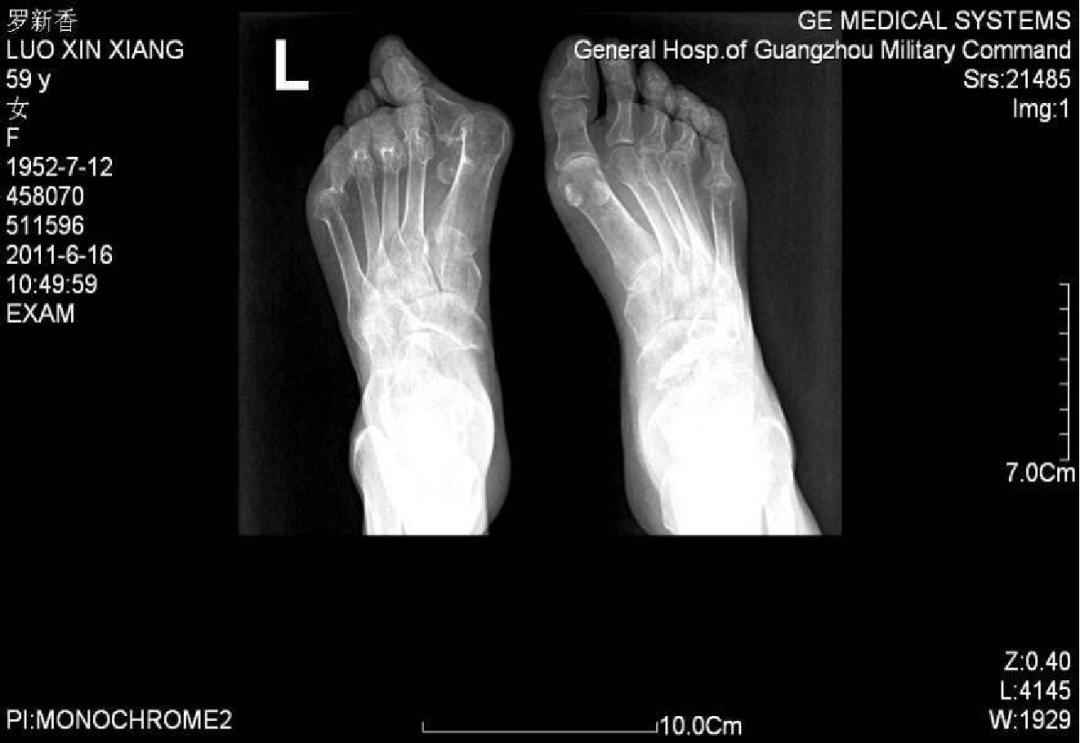 左足:第1-5跖趾关节脱位,足拇外翻。