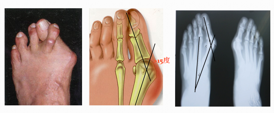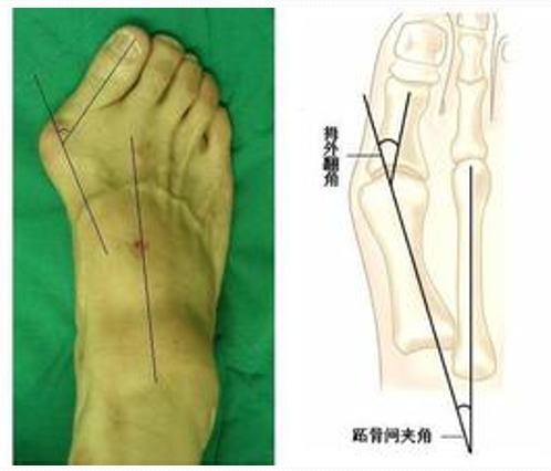拇外翻也叫大脚骨病,是指拇趾向外偏斜超过正常生理角度的一种足部畸形,是目前最常见的足病之一。一般认为拇趾的外翻角>15º可诊断为拇外翻。