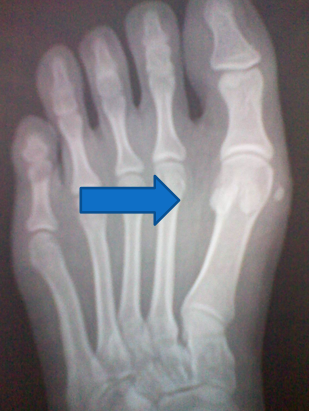 晚期(骨关节炎期) 除拇囊炎疼痛外,跖趾关节肿胀疼痛,X线片可见跖趾关节有骨关节炎表现,此期手术治疗适于骨与软组织联合手术。