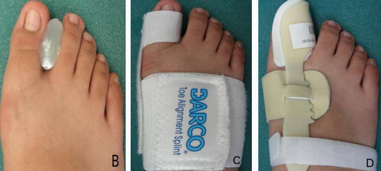 实用骨科学中按照临床表现、X线片改变与治疗选择不同,将拇外翻分为三期早期(半脱位前期) 拇趾轻度外翻畸形,拇囊炎轻微,疼痛不重,X线片显示拇跖趾关节向外半脱位,不合并锤状趾,此期可手法搬正。一般可非手术治疗。