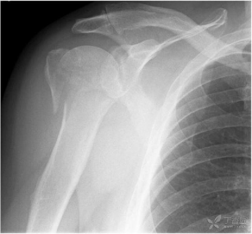 IV型:大结节骨折大结节骨折且移位大于l厘米以上。大结节有三个面做为冈上肌、冈下肌和小圆肌的附着点。外伤时可造成整个大结节骨折移位,也可为大结节的一个面撕脱骨折。如为部分撕脱骨折且有明显移位时,则说明肩袖有纵行撕裂。如大结节移位骨折同时有外科颈的移位骨折,则关节段骨块由于受附着于小结节的肩胛下肌的牵拉而发生内旋。