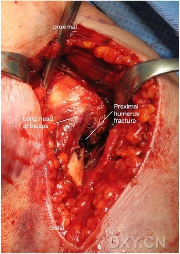 - 破坏骨折块的血供。由于过分显露骨折端,在肱骨颈内侧插入骨膜剥离器、复位钳或拉钩,损伤了供应肱骨头骨折块细小的血管分支。