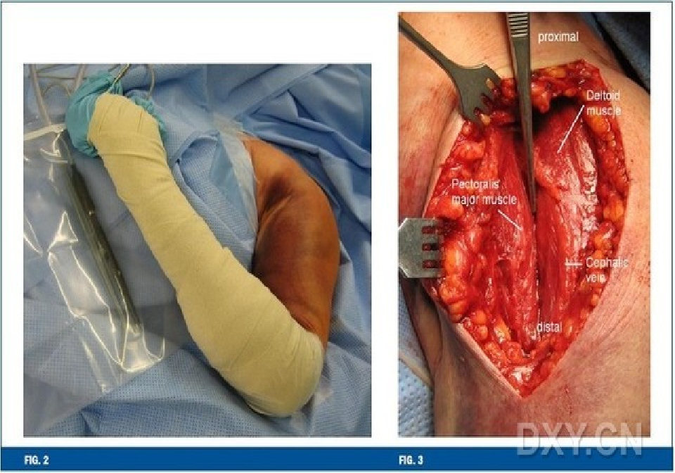 手术方法患者卧于可透X线的手术床上,取沙滩椅位或仰卧位。经胸大肌三角肌入路,显露头静脉,牵向外侧,并妥善保护其数个三角肌支。