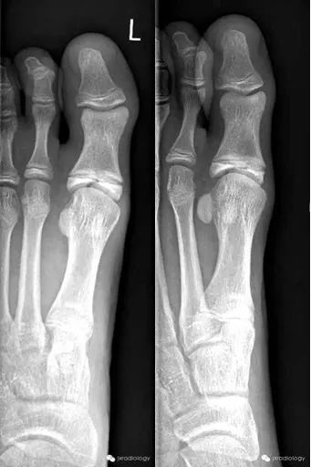 骨骺裂是骨骺的正常变体。它可以是单侧或双侧最常见的部位是足部第一近端指骨的骺前。