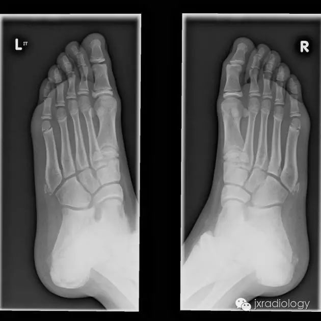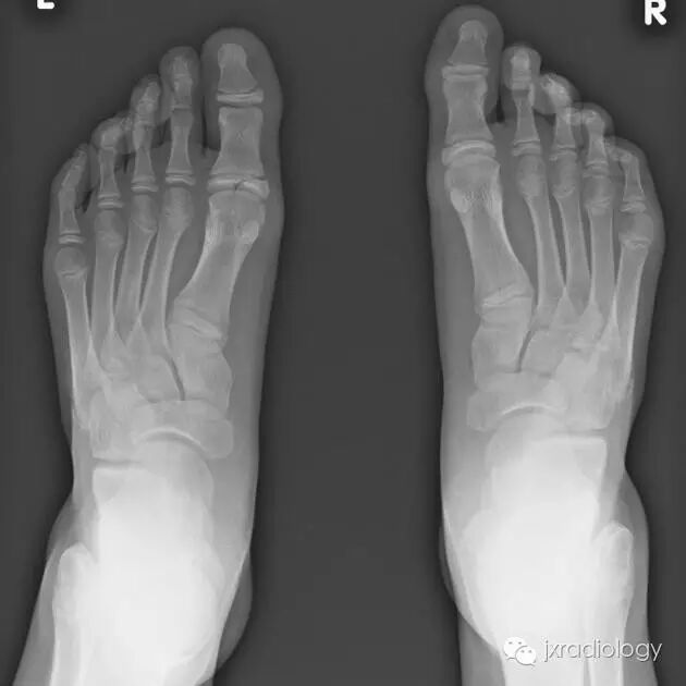 骨骺裂是一种正常变异。它可以是单侧或双侧,最常见的部位是足的第1趾近节趾骨的骨骺。