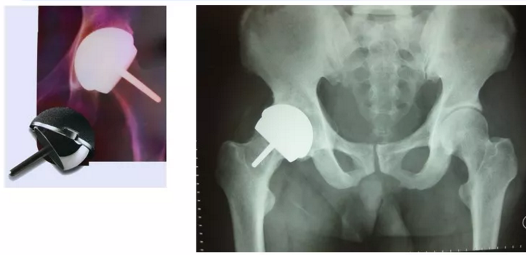 - 20世纪70年代出现双极头假体。相当比率患者出现腹股沟部疼痛,因此越来越多的医生采用全髋关节置换,对于一些大于75岁,手术耐受差,预期寿命短的病人可以采用半髋关节置换
