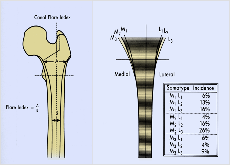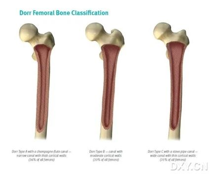 - TypeB型:股骨髓腔内侧尤其后侧皮质变薄,髓腔变宽