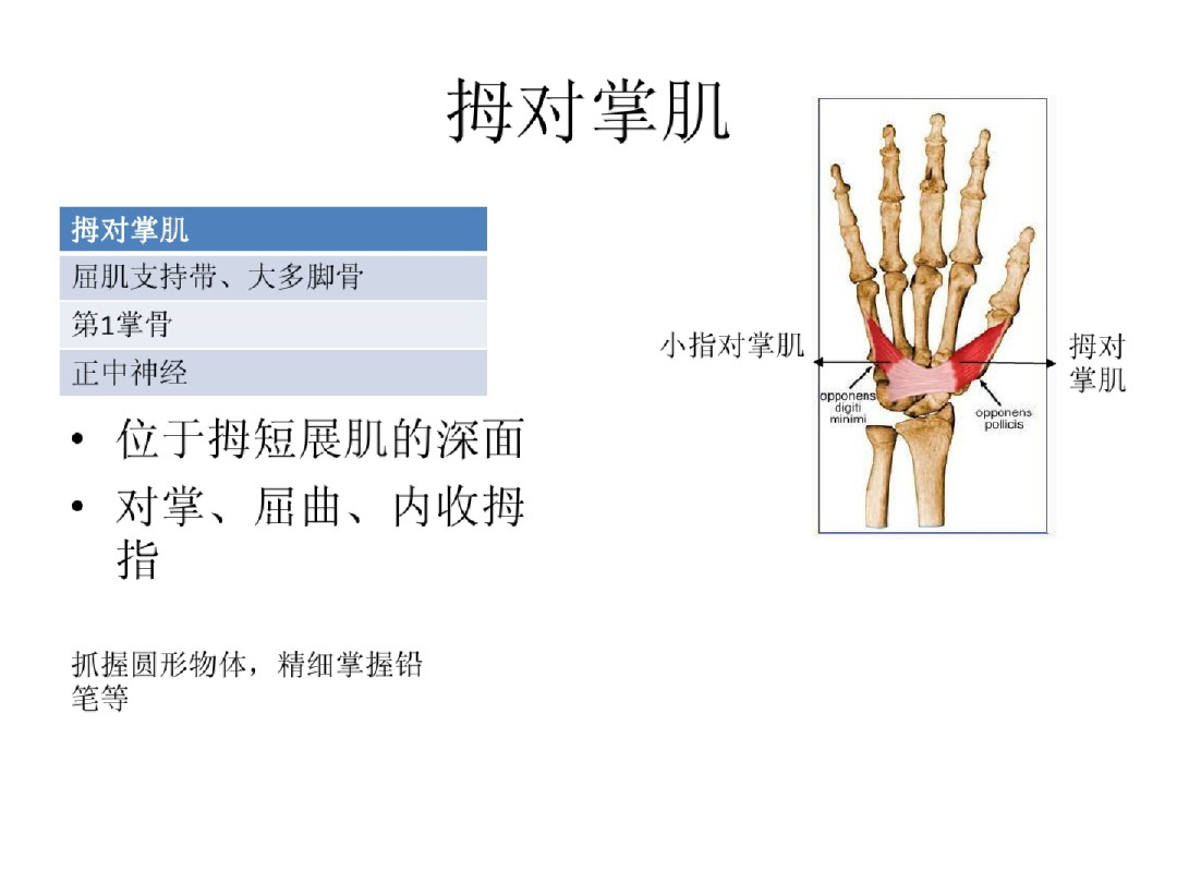 功能:拇指内收、外展及对掌功能
