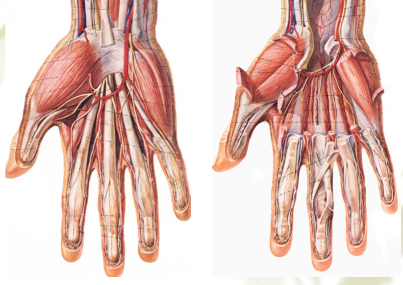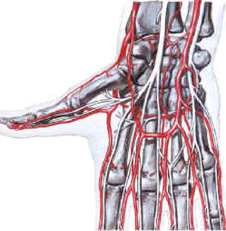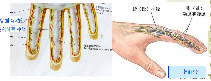 血供:掌心动脉和掌背动脉