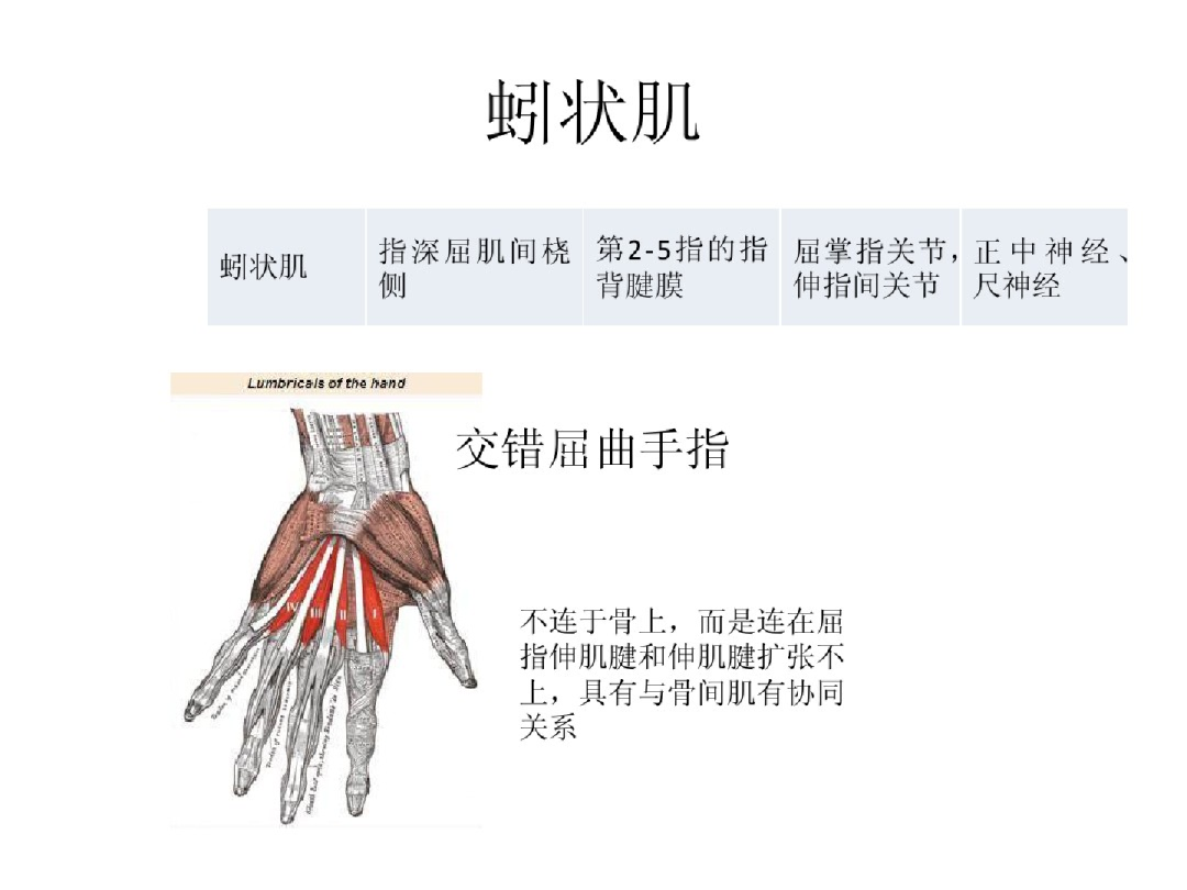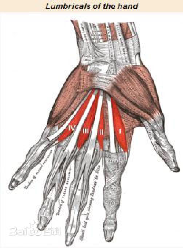功能:与骨间肌协同,屈掌指关节,伸指间关节。