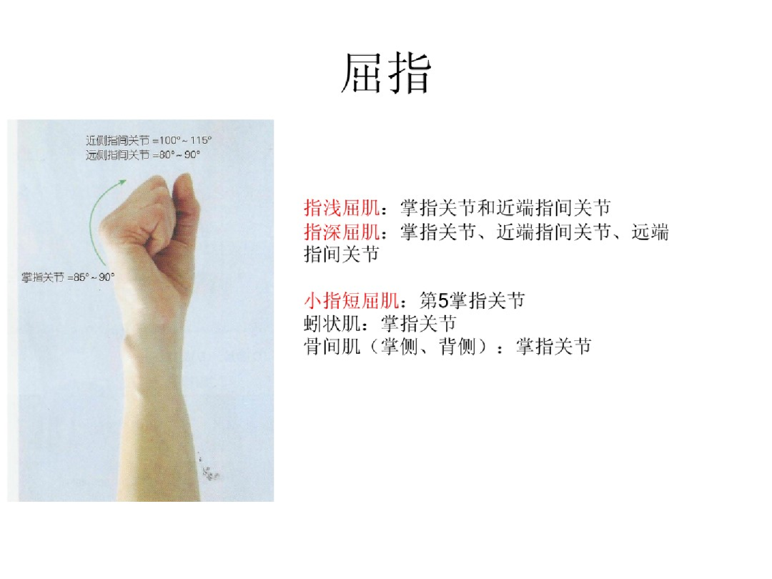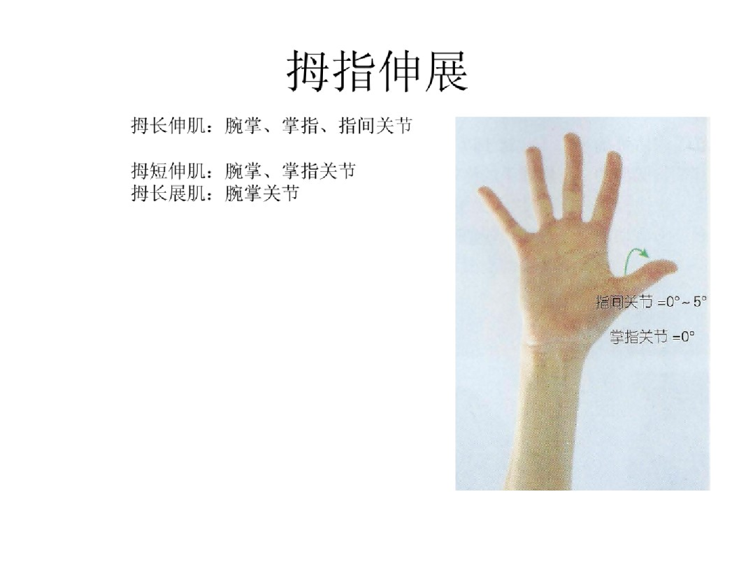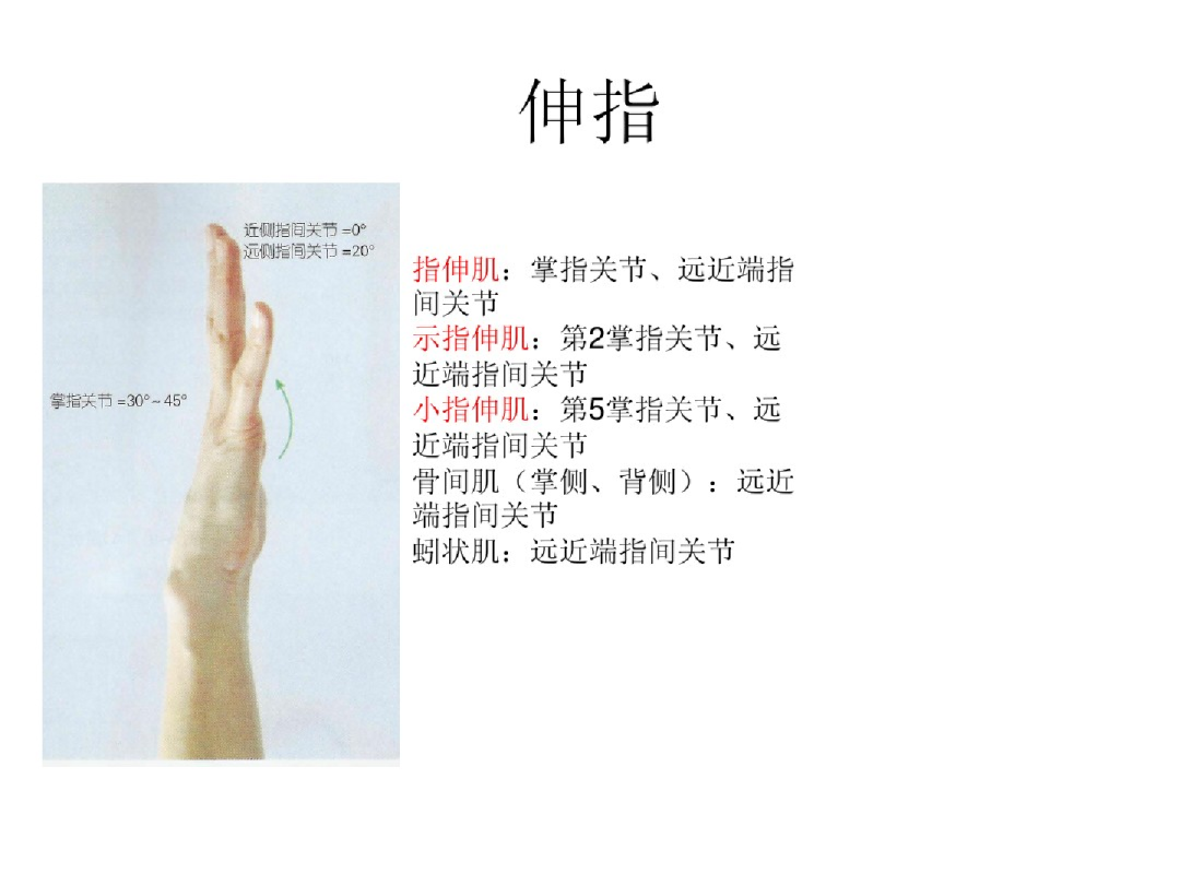 5.掌指关节区:活动范围大,约5-8cm,损伤后掌指关节伸指不能,指间关节蚓状肌等可伸指。