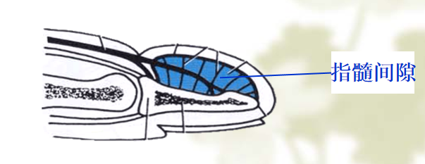 位于各指远节指骨远侧4/5段掌侧的骨膜与皮肤之间 ,内有丰富的脂肪、血管和神经末梢。当指端感染时、肿胀时,局部压力升高,会压迫神经末梢和血管,引起剧烈疼痛,此时,应及时行指端侧方切开引流术,只有切断纤维隔,才能引流通畅 。