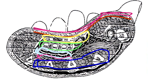 4.掌浅弓、正中神经(黄色)
