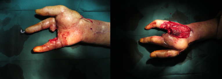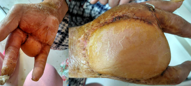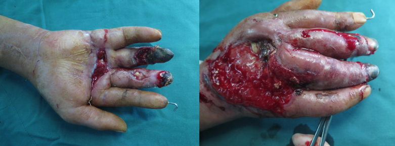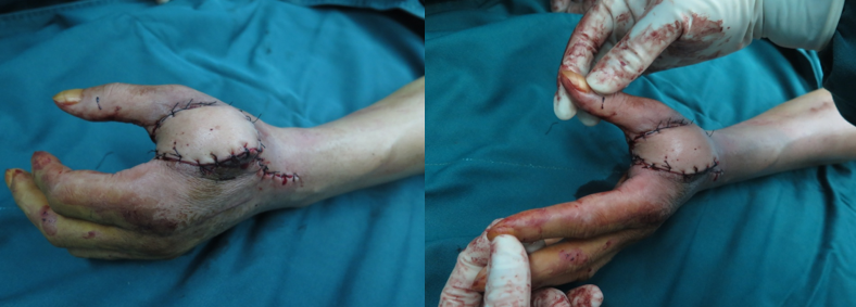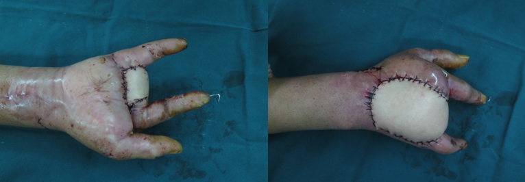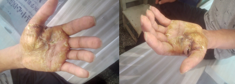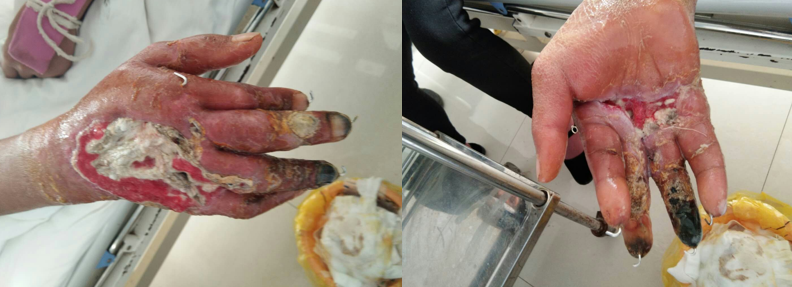 赵某某,男,52岁,机器绞伤致右手皮肤缺损