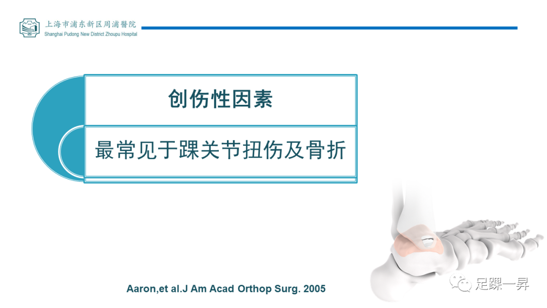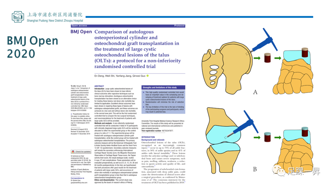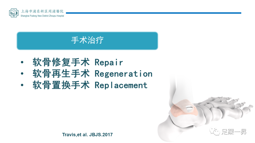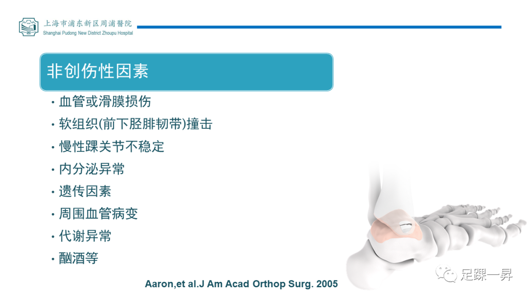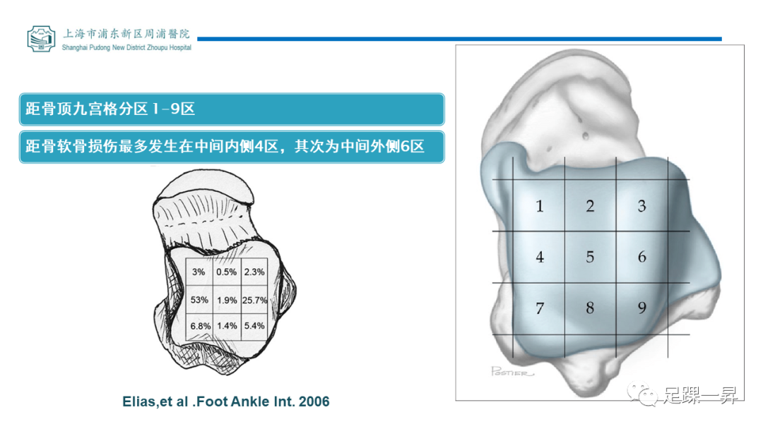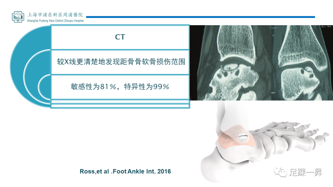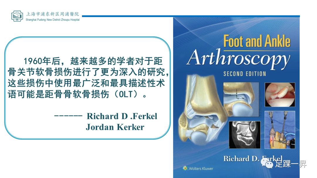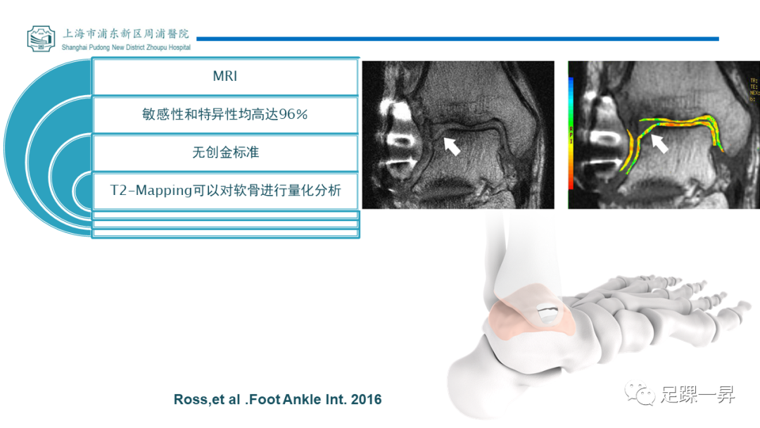 距骨骨软骨损伤Osteochondral Lesions of the Talus(OLT)是临床常见的踝关节病变,常伴有踝关节外伤病史,往往是踝关节慢性疼痛的病因之一。距骨骨软骨损伤是指距骨关节面软骨连同软骨下骨的损伤,多表现为局部关节软骨剥脱,并可累及深部的软骨下骨。大多数距骨骨软骨损伤都是由踝关节骨折和踝关节扭伤等创伤引起的。是踝关节慢性疼痛的主要病因之一,多见于男性,通常发生在 20~30 岁之间,约10%双侧受累。距骨骨软骨损伤的发病机制和创伤、遗传因素相关,具体病因尚不明确。目前认为创伤和反复的慢性损伤,如踝关节反复扭伤,崴脚是引起距骨软骨损伤的主要因素。98%的距骨顶内侧和 70%的距骨顶外侧的距骨骨软骨损伤与创伤有关。对于不同程度的距骨骨软骨损伤,依据不同的检查有各式各样的分型。根据不同分型也有相适应的治疗方案。