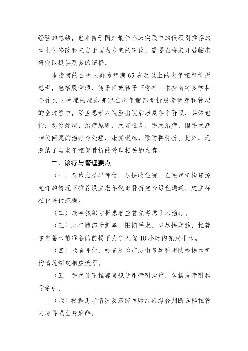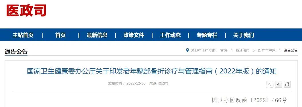国家卫生健康委办公厅关于印发老年髋部骨折诊疗与管理指南(2022年版)的通知
