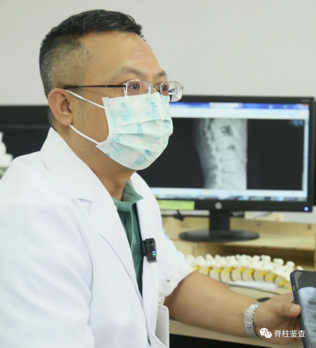 剧中,安欣的腰椎间盘突出症已经严重到医生建议手术,扶着腰走出与医生交谈。