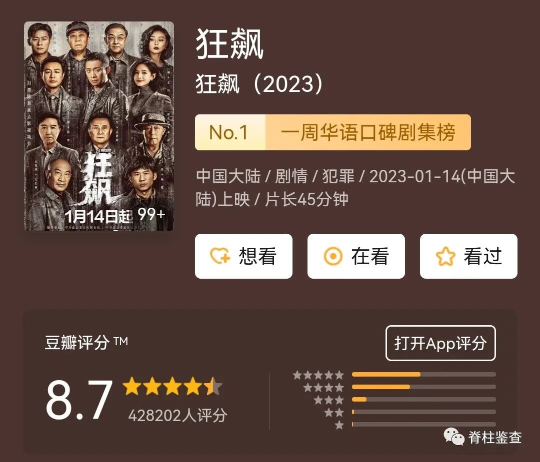2月1日晚,扫黑除恶剧《狂飙》大结局!《狂飙》播出时,口碑与热度齐飞,剧终后豆瓣评分8.7!