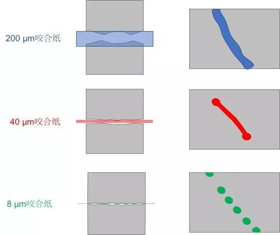 - 薄的咬合纸(如:8µm、12µm的厚度)则要有足够的压力,才能形成印迹。