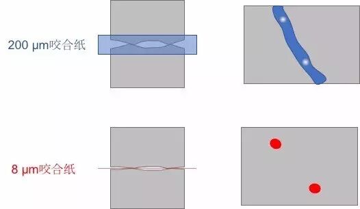 实际情况,厚薄两种咬合纸显示的印迹差异较大: