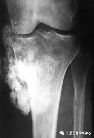 肿瘤骨:在病灶内或软组织肿块内,是由病理性成骨组织形成的骨质,不能演变为正常的骨质结构。表现为骨内或(和)软组织肿块内云絮状、斑块状、放射状无证正常骨小梁结构的高密度影,其密度可以差异很大。