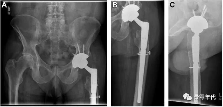病例1:患者男,62岁,在多次左髋关节手术后,主诉左髋关节疼痛和外展肌无力。他在9年前接受了左侧全髋关节置换术,随后分别在手术后3、6和9年进行了外展肌修复术。在体检中,注意到有Trendelenburg步态。