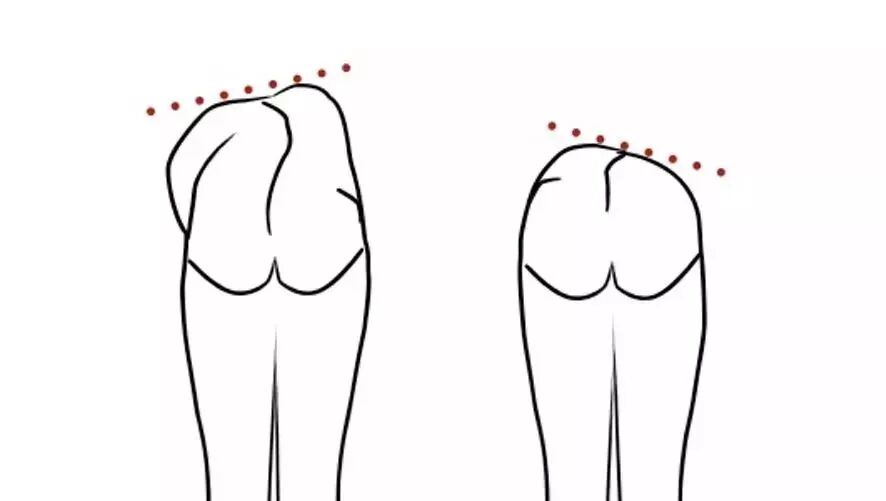 (右边背部较左边高,凸侧即为右边)