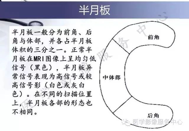 MRI 示其高信号的方向与半月板的长轴方向平行;