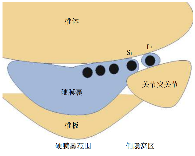 图2. L4-5侧隐窝狭窄致S1神经根受压示意图